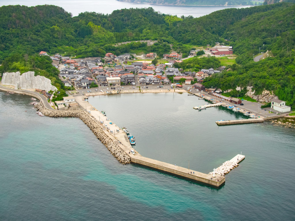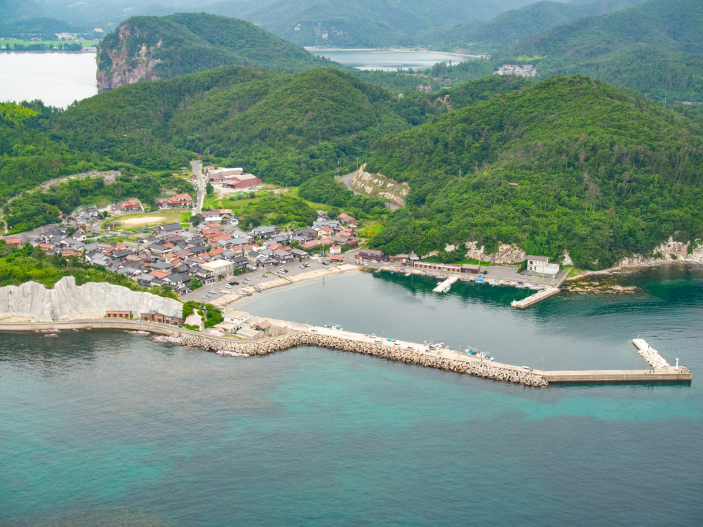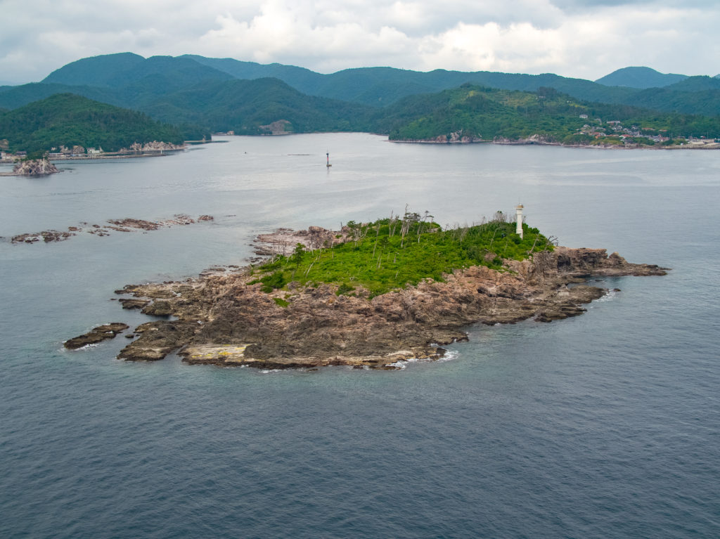 海から見る都万地区の四敷島と津戸地区です。
