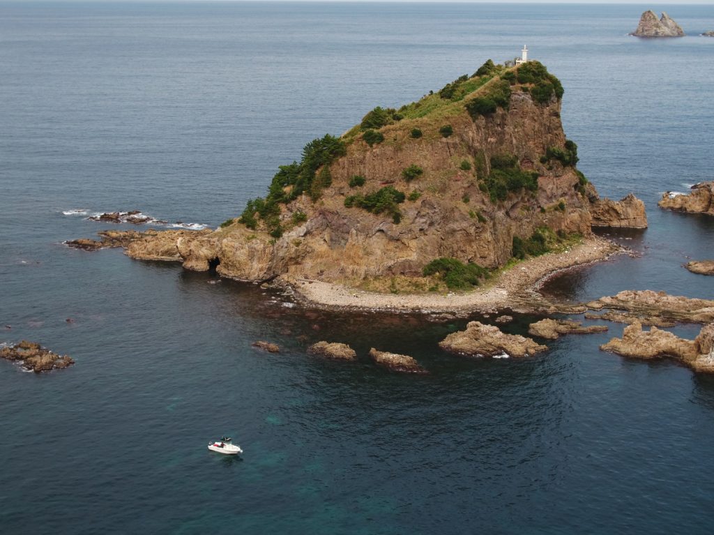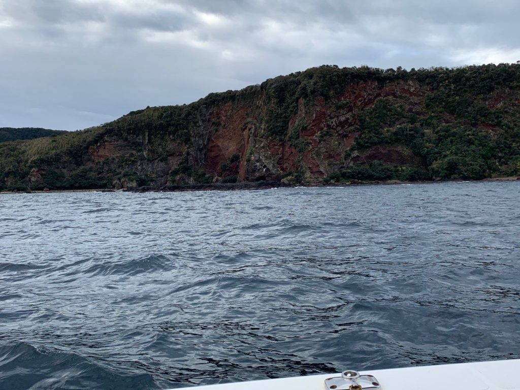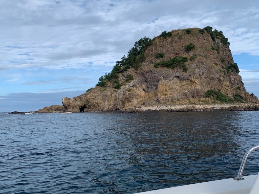 こちらも波がありボートが安定しないので、波影になる小森島に停泊してハート岩まで約1.7キロと少々遠く感じます。