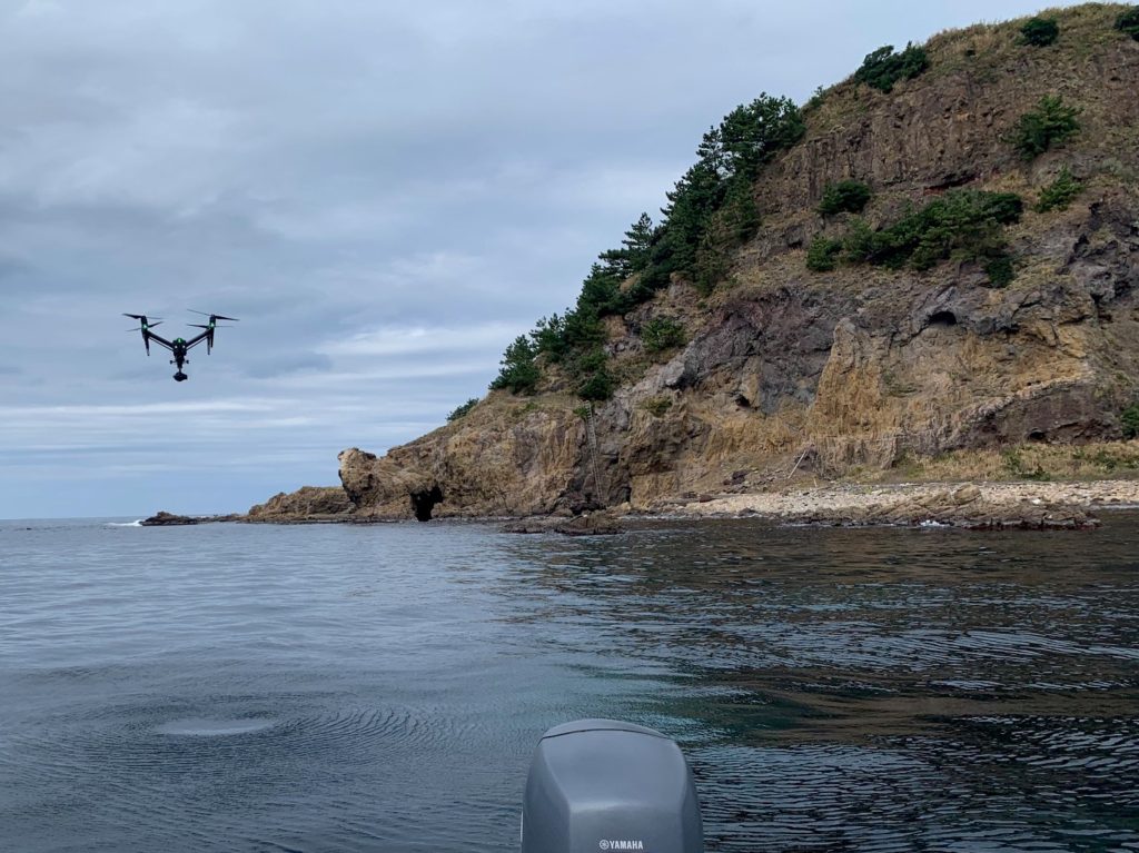 それでも何回も飛行させてきた明屋海岸なので岩に回り込んだり、ハートをのぞき込んだり危険なくデータ収集ができました。
